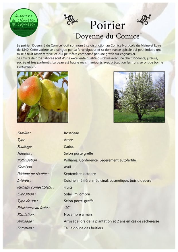 Porte-greffes : Cognassier de Provence (BA29) ou Poirier franc de semi
