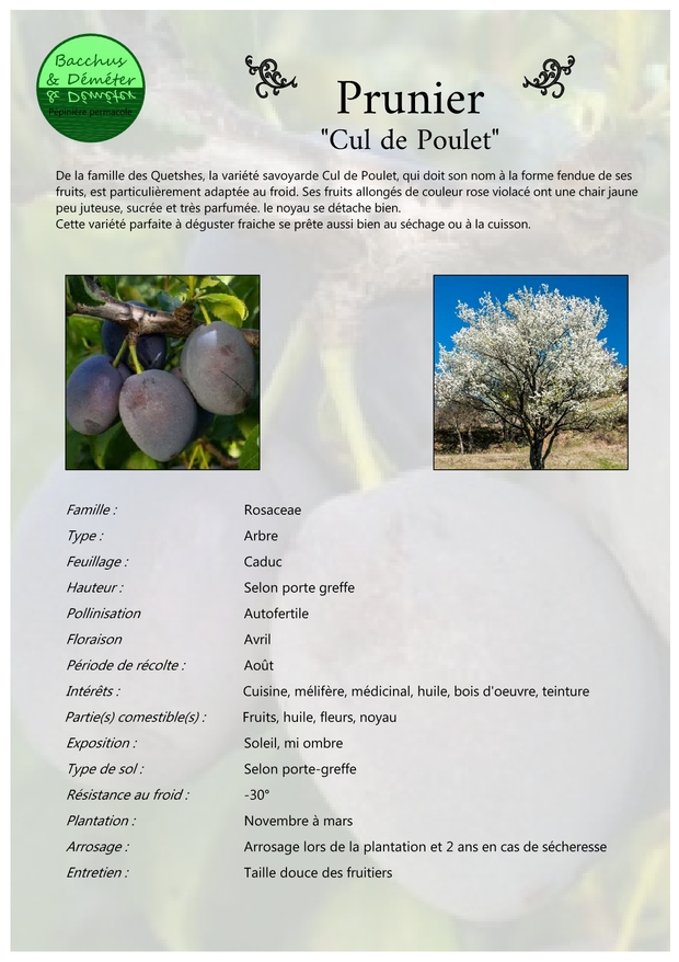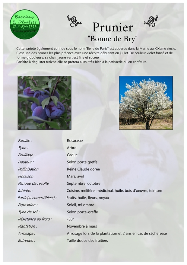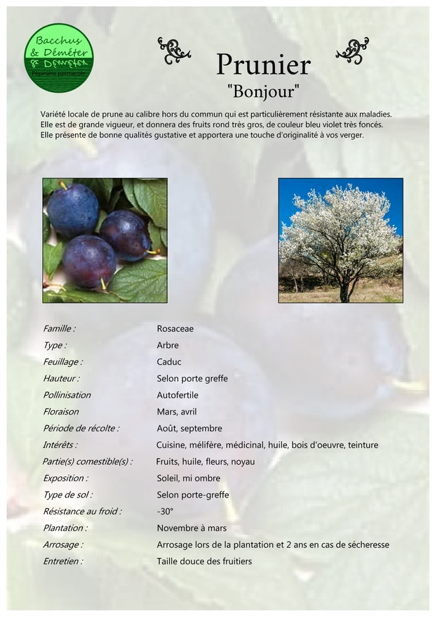 Porte-greffes : Prunier Myrobolan et Prunier Saint Julien.