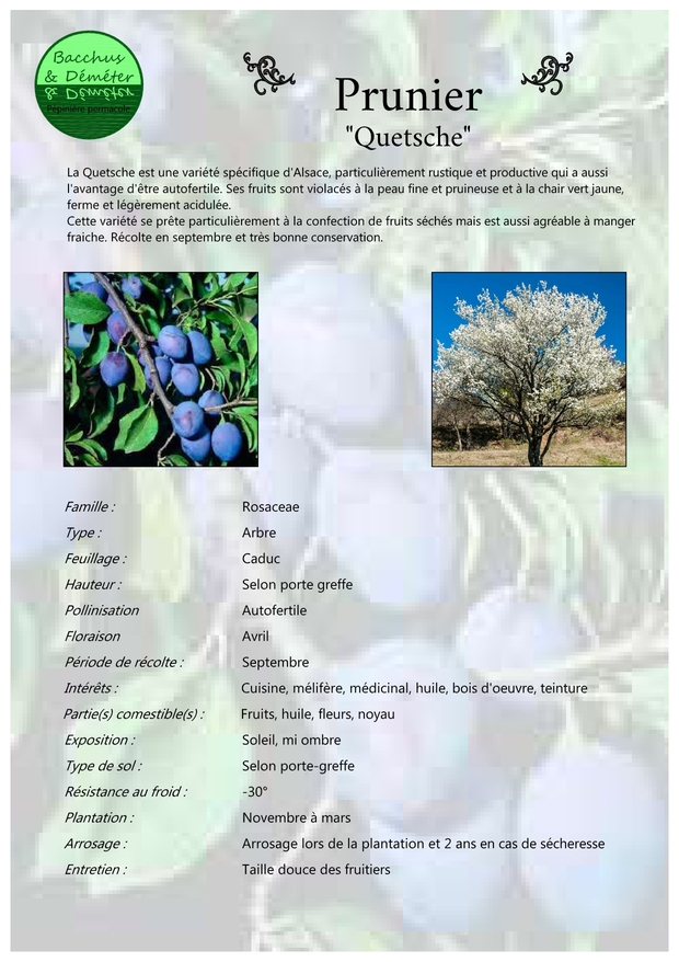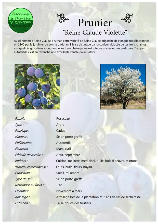 Porte-greffes : Prunier Myrobolan et Prunier Saint Julien.