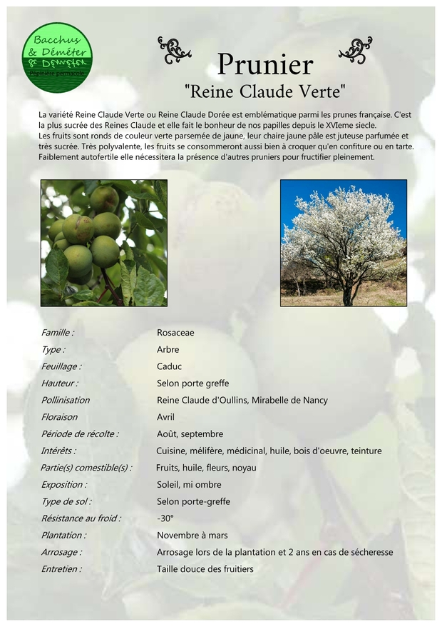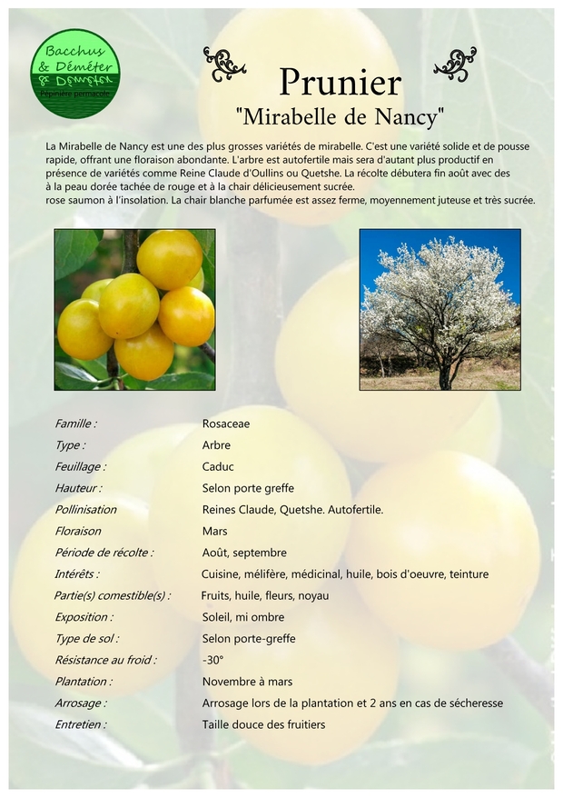 Porte-greffes : Prunier Myrobolan et Prunier Saint Julien.