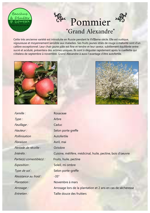 Porte-greffes : M26, MM106 et Pommier franc de semi.